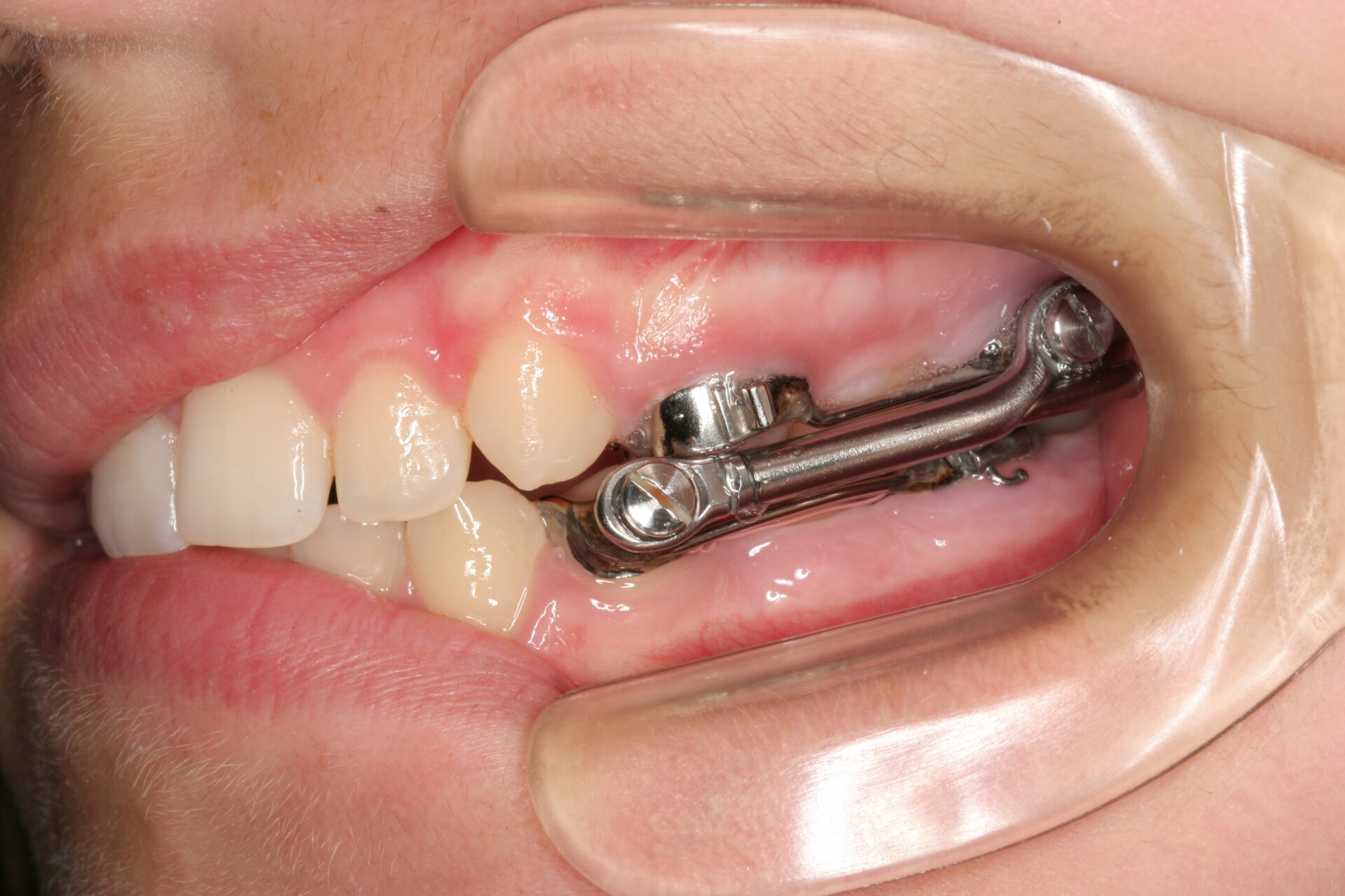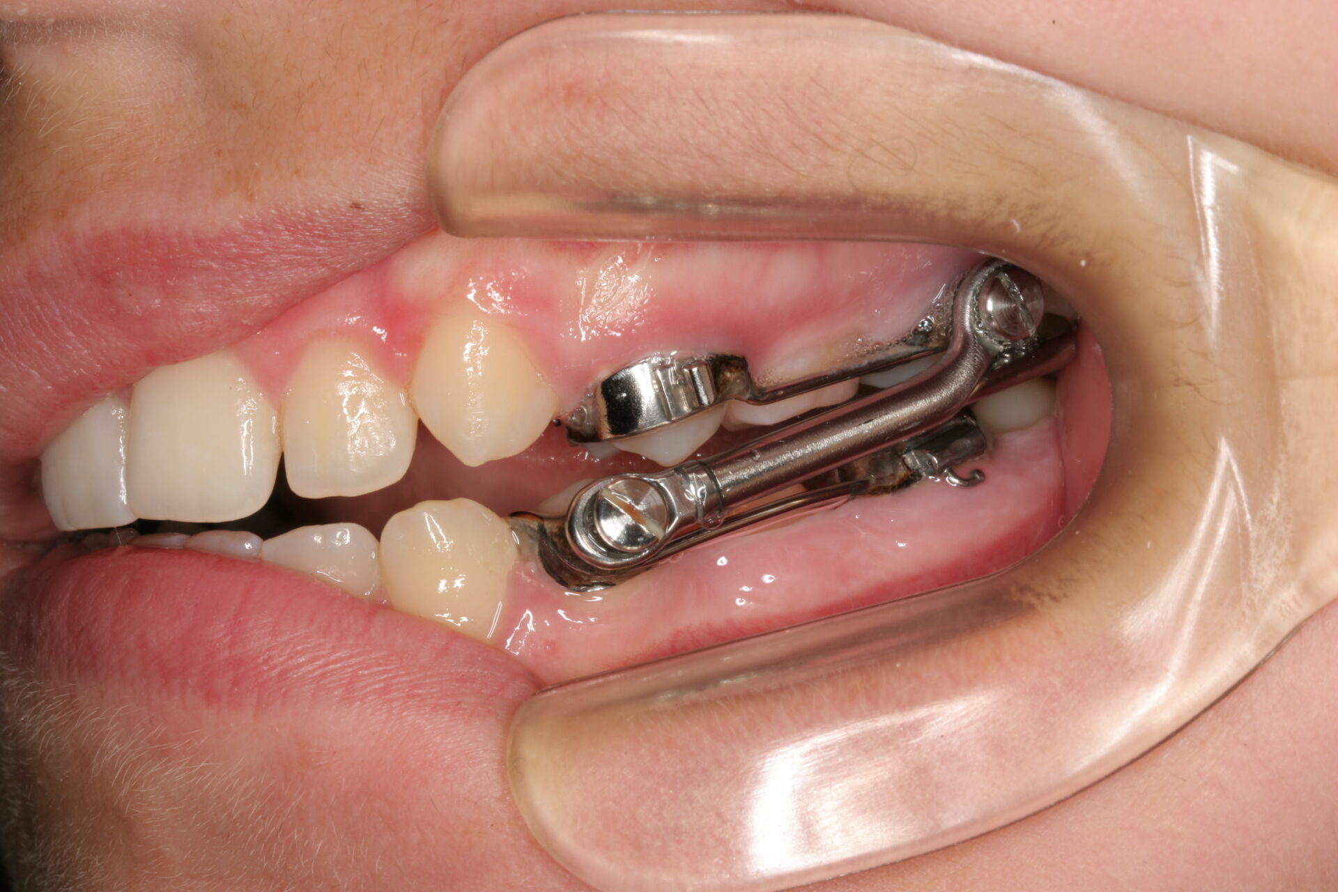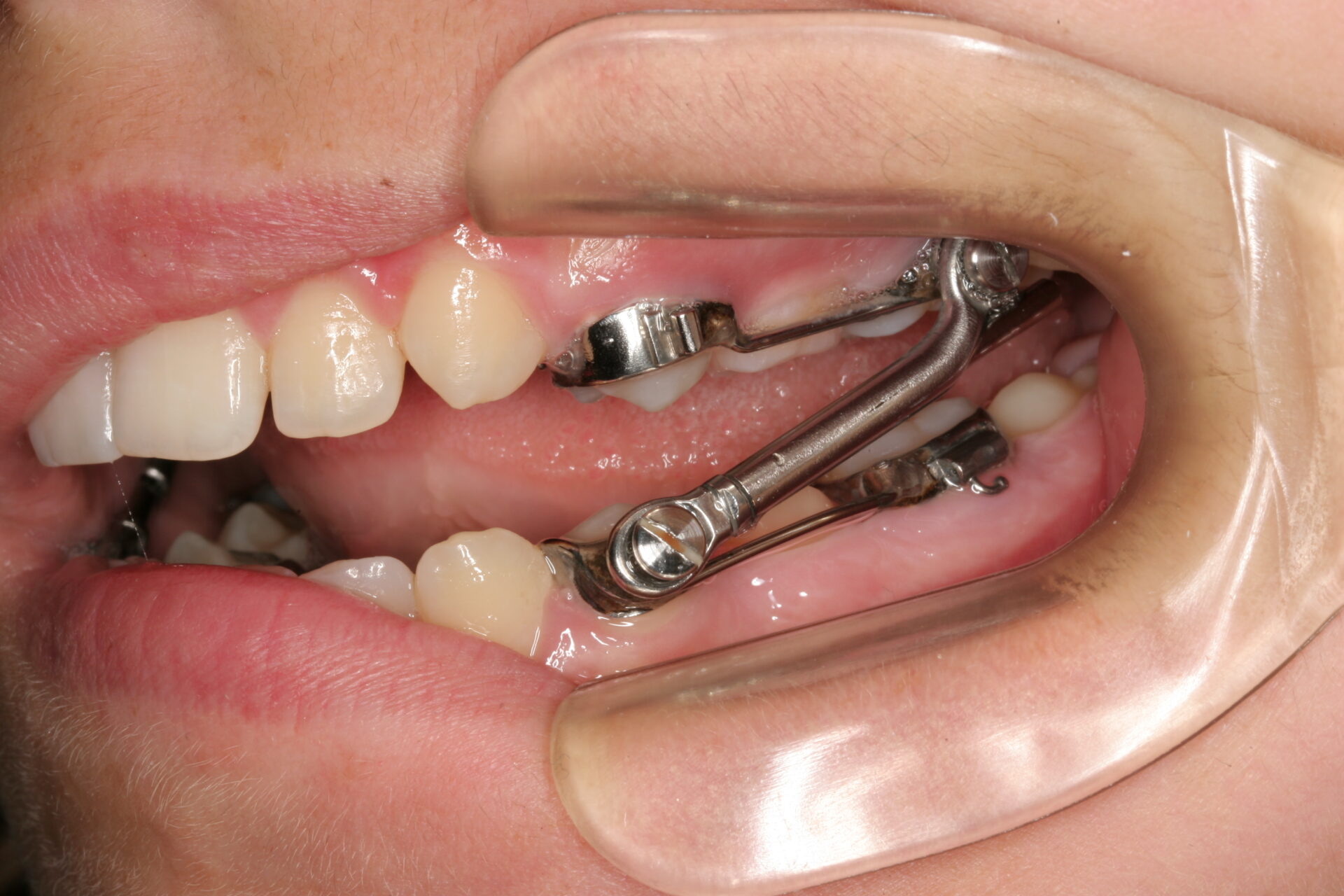 Het Herbst scharnier wordt de laatste tijd weer steeds vaker toegepast. Het dwingt de onderkaak in de juiste stand naar voren ten opzichte van de bovenkaak.